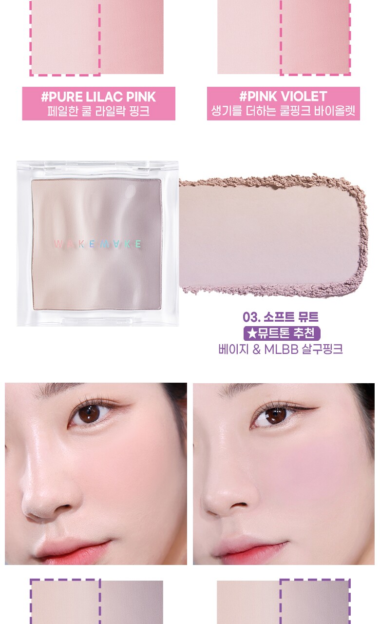 02 Mood Cool: A light pink & pink lavender color of pure lilac pink & pink violet that goes well together and even separately (Recommended for summer-cool skin tone)