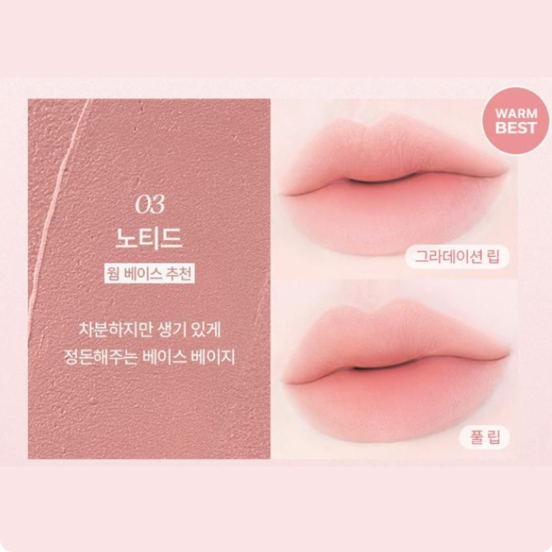 Say goodbye to heavy matte lipsticks! This sheer-matte formula enhances your natural lips with a soft blurred effect, giving you that chic, modern K-Beauty look.